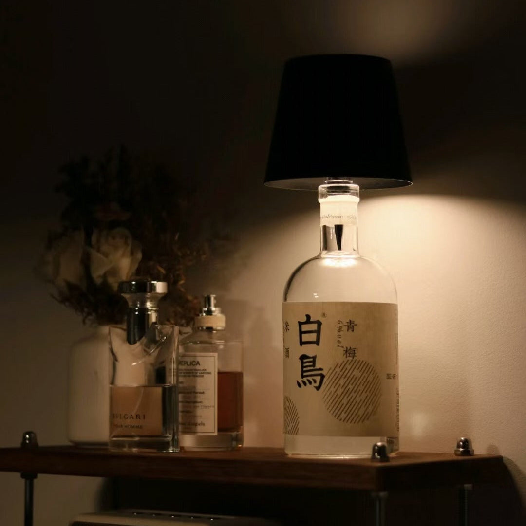 Then one night while scrolling online, I stumbled across something called a bottle lamp. It was a tiny light designed to sit right on top of an empty bottle and instantly turn it into a lamp.